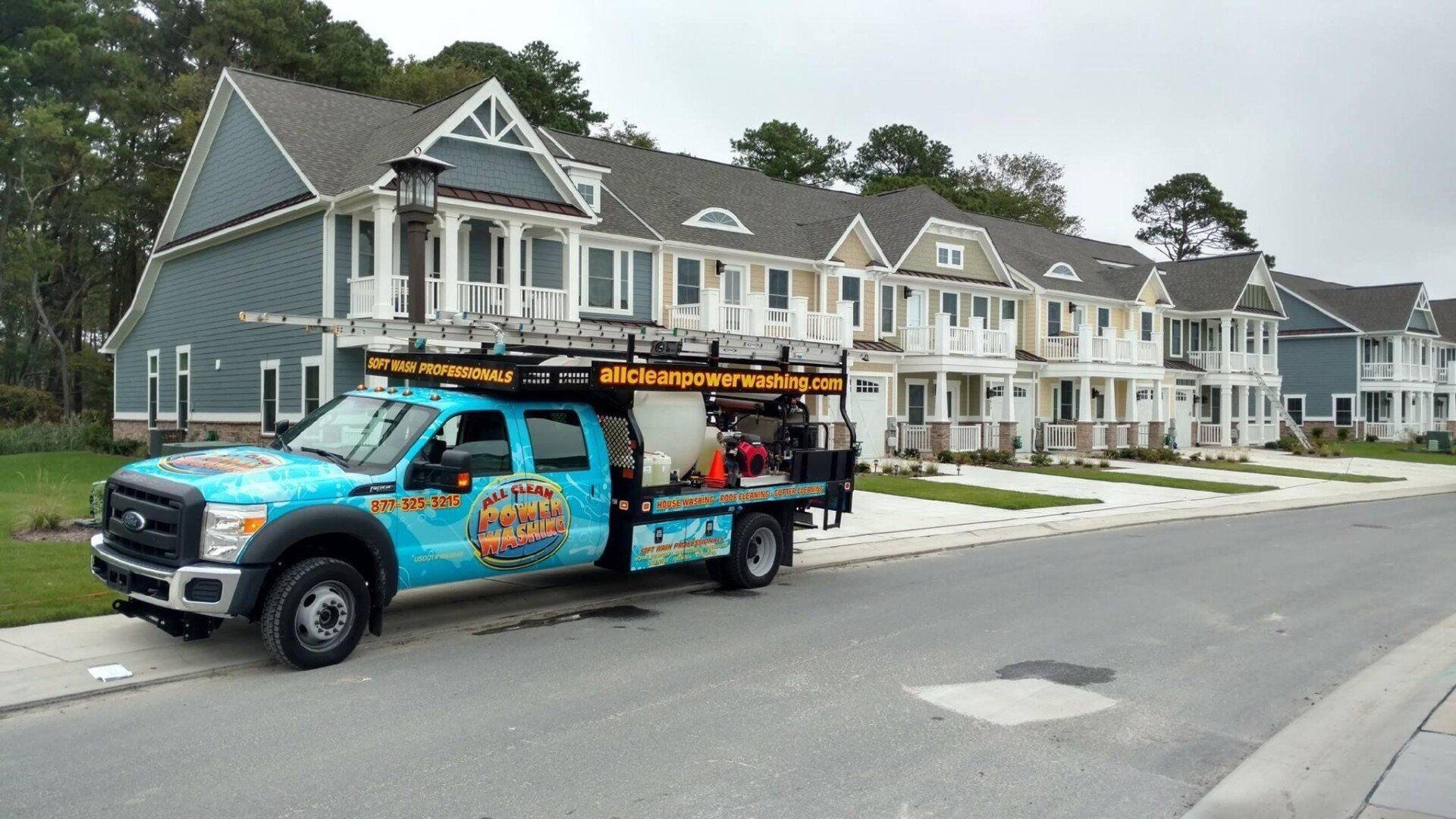 We have professionally trained uniformed technicians with commercial truck-mounted power washing equipment. We are equipped to bring over 3,000 gallons of water on-site when water is not available. For a FREE quote, call (877) 325-3215.